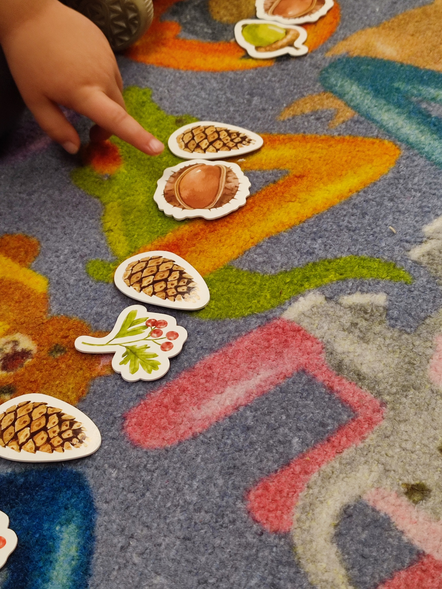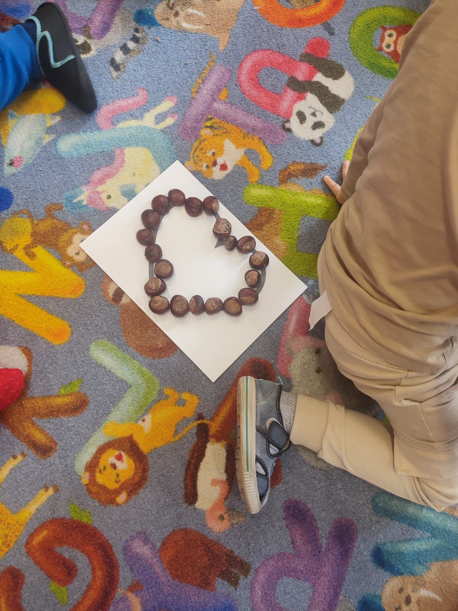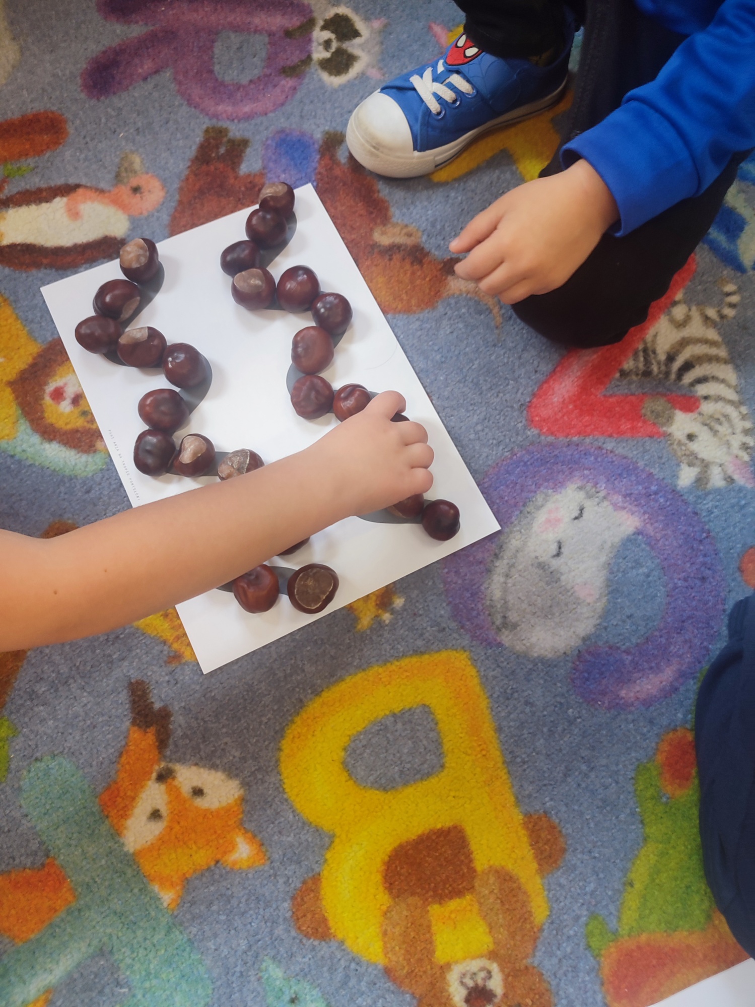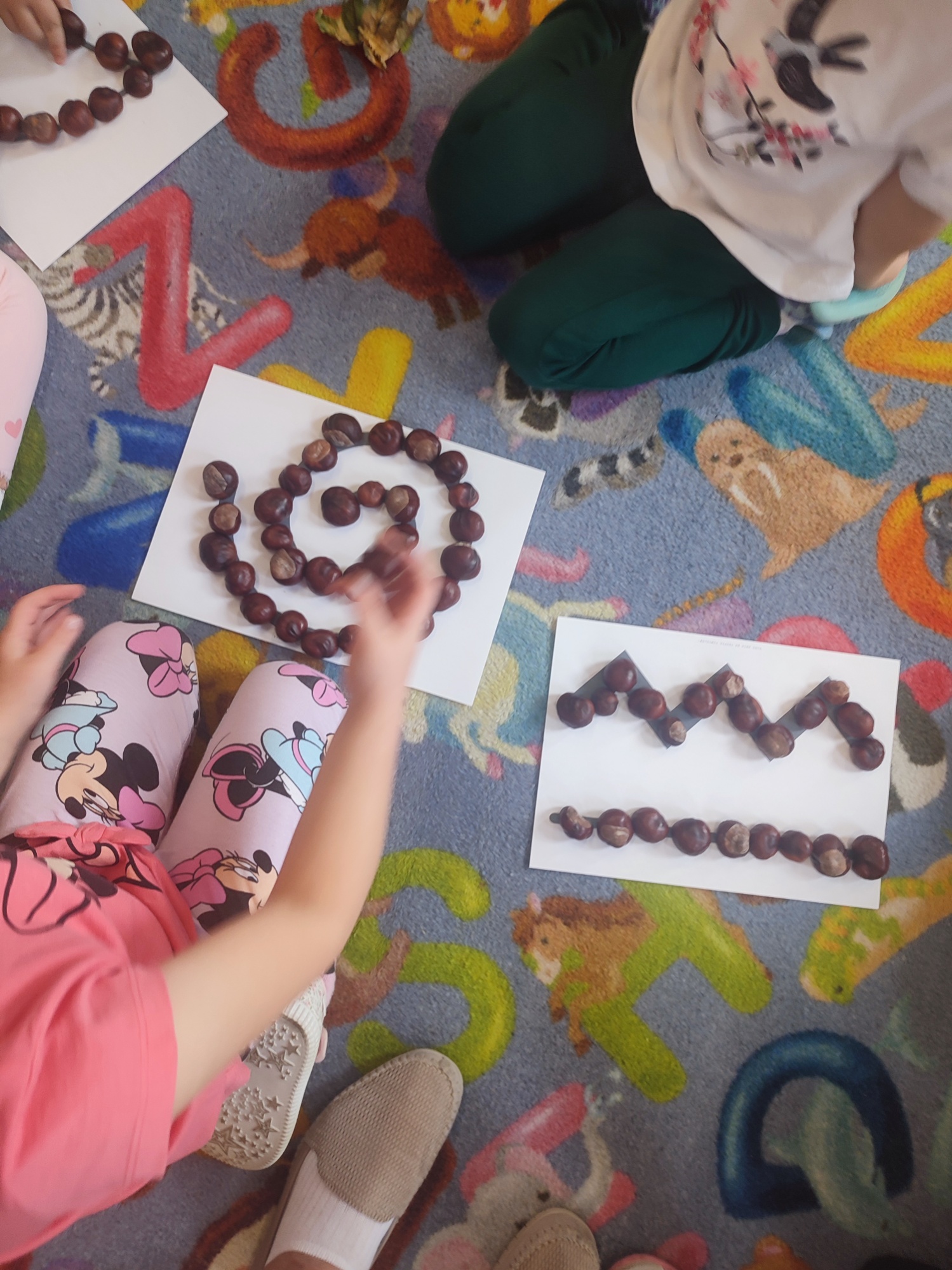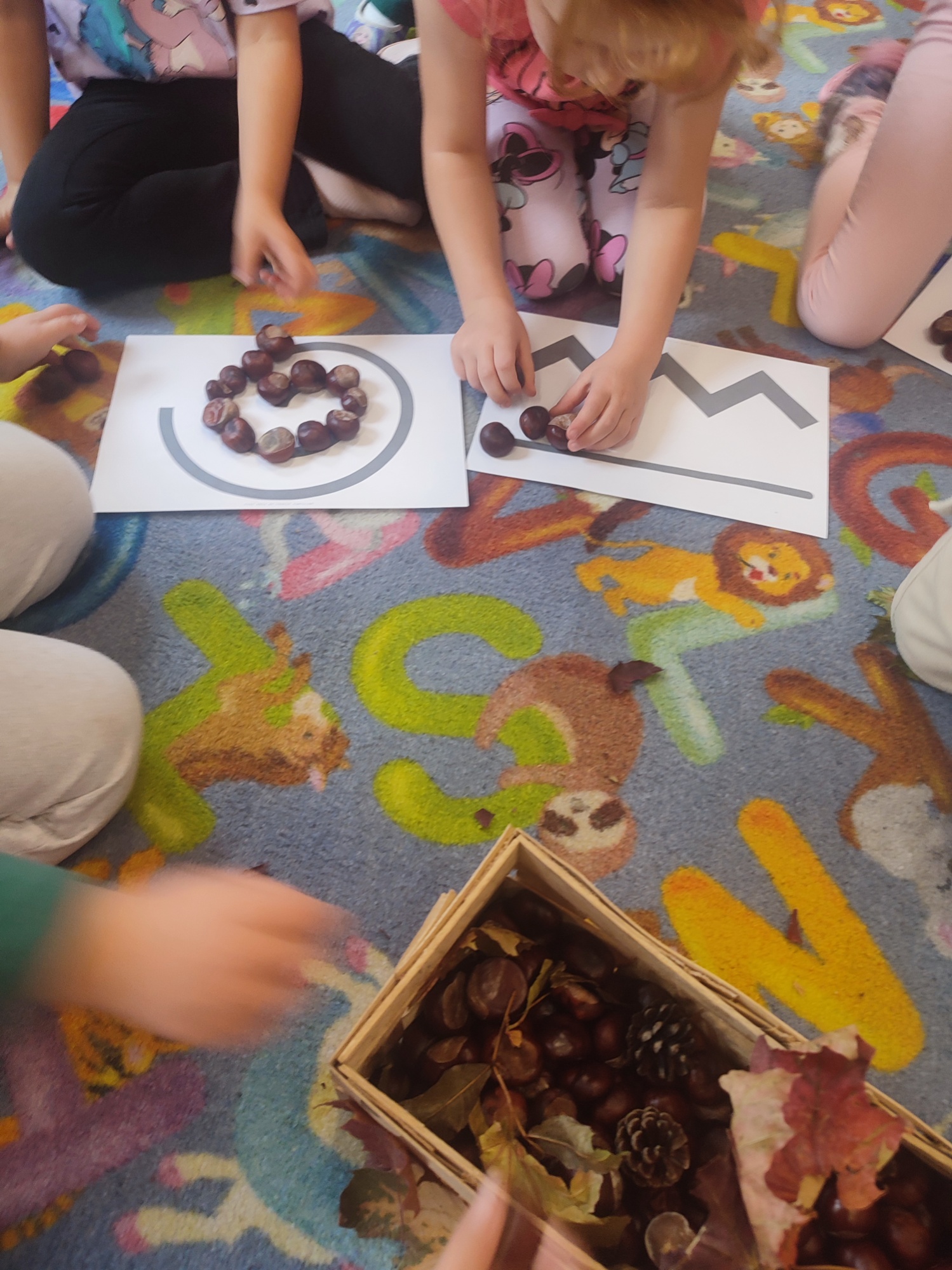3 października obchodziliśmy święto kasztana. Dzień ten stał się więc okazją do wspólnego świętowania, zabaw, edukacji o jesieni i wykorzystania kasztanów jako materiału do twórczych działań. Z kasztanem w roli głównej: śpiewaliśmy, tańczyliśmy, przeliczaliśmy i tworzyliśmy( i odwzorowywaliśmy) kasztankowe wzory.