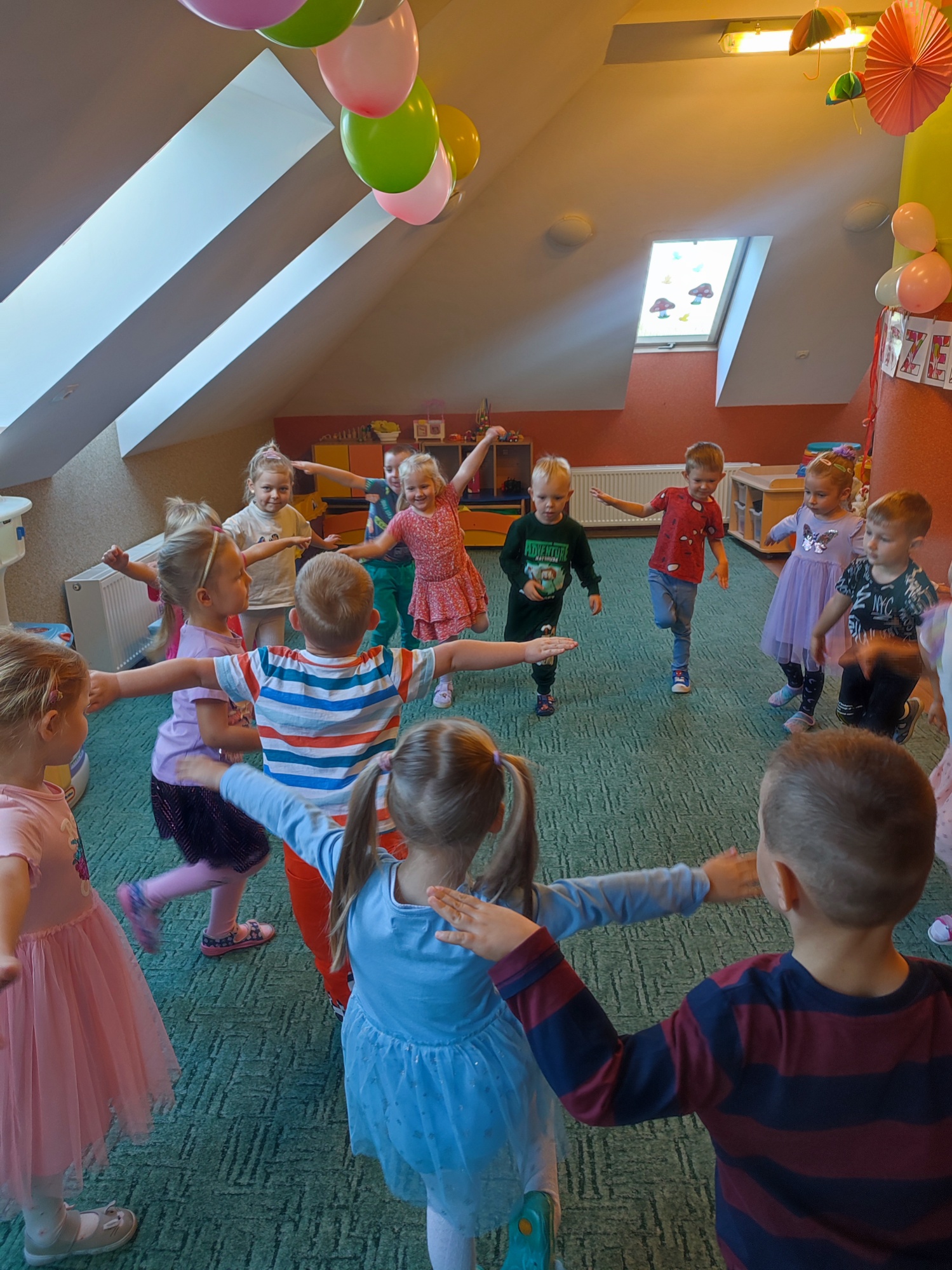 wszyscy świętują Dzień Przedszkolaka”W tym roku ulubione święto dzieci wypadło w sobotę, dlatego jego huczne obchody przełożyliśmy na piątek. Od samego rana w przedszkolu było radośnie i gwarno. Przedszkolaki zostały zaproszone do wspólnej zabawy, udziału w konkursach i tańcach przy ulubionych przebojach muzyki dla dzieci.