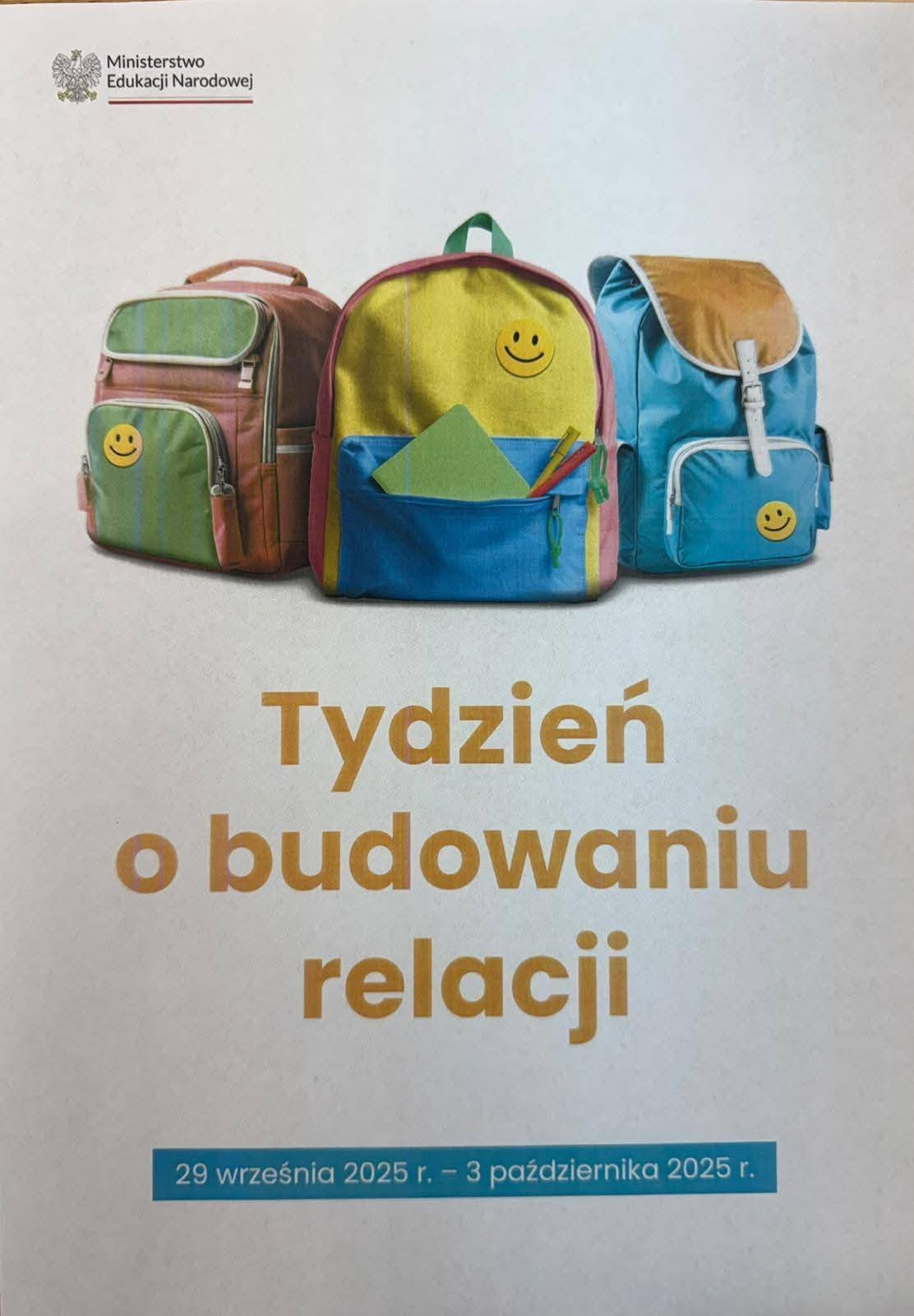 W dniach 29.09.2025 r.- 3.10.2025 r. nasze przedszkole włącza się w inicjatywę Ministerstwa Edukacji Narodowej – Tydzień Budowania Relacji.To ogólnopolska akcja, której celem jest wzmacnianie więzi między dziećmi, uczenie współpracy, szacunku oraz przeciwdziałanie przemocy rówieśniczej- w tym tygodniu skupiamy się na przyjaźni, empatii, współpracy i sile dobrego słowa.